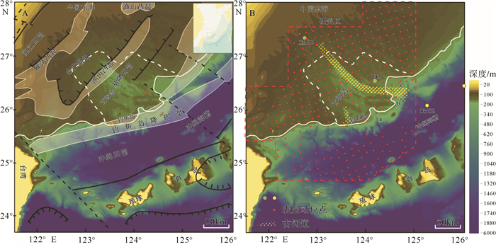 Sediment types, grain size parameters and fragmental minerals of the 356 surface sediment samples from the paleo-gulf located off the northeastern Taiwan and surrounding shelves are studied for dynamic environments and origins. The evolution of the Holocene sedimentary dynamic environments of the gulf could be clearly divided into three phases. During the last glacial maximum (LGM), turbidity currents and landslides dominated the edge of the paleo-gulf (B-3). A great amount of terrigenous sediments rapidly poured into the Gulf. Seabed and underlying strata were eroded and two gravel belts formed as turbidity channels, and left behind poorly-sorted and inadequately reworked sediments. Tides, waves and cross-shelf currents, especially strengthened by the East Asian Winter Monsoon (EAWM), severely washed and eroded the edge and mouthof the B-3, where formed the sediments with high contents of sand and quartz, quartz/feldspar ratios, and little biodetritus; During the last deglaciation, owing to the periodic sea-level rises and significant coast retreat, turbidity currents weakened, and tidal currents became the major dynamic force on the shelf. Tidal bottom stress reworked the shelf sediments. Differences in sediment compositions, types, contents of quartz, feldspar, lithic fragments and biodetritus, quartz/feldspar ratios between(B-2)the western shelf pebbly-gravelly sand area (B-1) and the northern shelf pebbly sand-pebbly muddy sand area (B-2) reflect the difference in sea bottom topography which control the strength of tides and waves in addition to the speed of horizontal transgression; In the subsequent highstand period, the influence of Kurosio Current (KC) in the study area was increased. In addition to seafloor erosion, its bottom current also hindered the deposition of modern terrestrial sediments, and thus left behind coarse sediments in B. The deposition of fine-grained sediments was partly attributed to the weakening of the bottom current in A as well as local tides and waves. For the origin of the paleo-gulf, turbidity currents of the LGM certainly played an important role. They eroded the bottom deposits and strata, deepened the depressed geomorphology under the influence of the previous NW-trending fault activity; Moreover, strong hydrodynamics such as tide-wave system, the KC of subsequent periods prevented fine-grained sediments deposition in the B-3, and finally retained its depressed geomorphology.